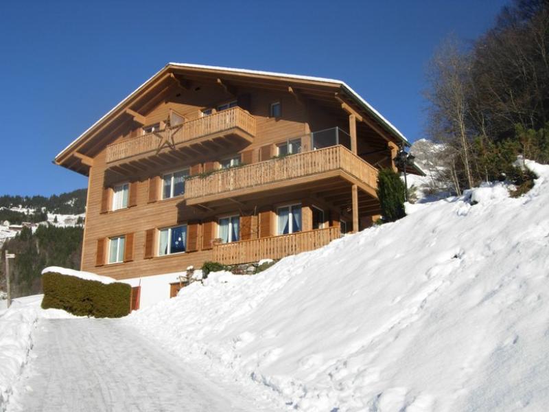 Die Wohnung ist mit viel Holz an den Wänden und Korkböden ausgestaltet. Auf den rund 49m2 Wohnfläche dieser schönen 1-Zimmerwohnung findet man ein Wohn-Schlafzimmer mit 3 Einzelbetten, Sofa, Fernseher, W-LAN-Anschluss, offene Küche, Dusche mit WC und einen nach Süden gelegenen Balkon. Da das Haus an erhöhter Lage ist, sind im Winter Schneeketten an gewissen Tagen dringend empfohlen.